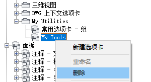 无法放弃从功能区选项卡删除功能区面板的操作。如果要删除错误的功能区面板,请单击“取消”以关闭自定义用户界面 (CUI) 编辑器,而不保存所做的更改。但是,执行此操作将放弃您可能已做的任何其他更改。