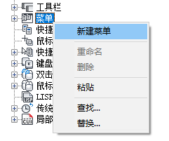 中的自定义设置”窗格中,在“菜单”节点上单击鼠标右键。单击“新建菜单”。