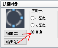 在“按钮图像”窗格中的“应用于”下,选择三个图像指定选项中的一个:“小图像”、“大图像”或“同时应用两者”。然后从图像列表中选择要输入的图像。