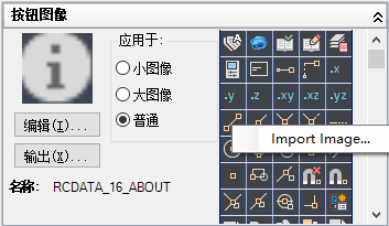 在“按钮图像”窗格中,在图像列表上单击鼠标右键并单击“输入图像”。
