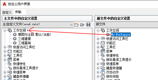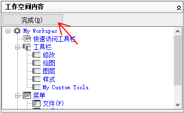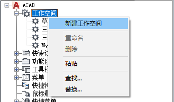 将工作空间置为当前、创建或修改工作空间,并将工作空间从局部 CUIx 文件输入主 CUIx 文件。