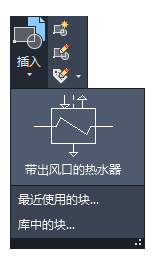 - 在“常用”选项卡中单击“插入”,然后单击“来自库的块”。这将启动 BLOCKSPALETTE 命令。