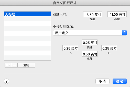 定义自定义图纸尺寸的页边距。
