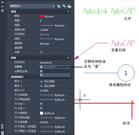 注释对象包括标注、注释和其他类型的说明性符号或通常用于向图形添加信息的对象。