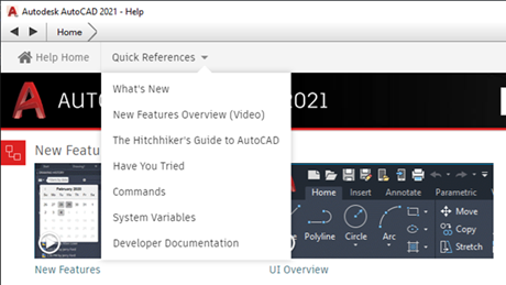 AutoCAD帮助具有新的“快速参考”菜单、“您尝试过吗”文章现在已组织在一个目录中,并且新的卡格式可以更轻松地访问学习视频。