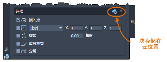 对“块”选项板进行了许多功能增强,包括改进了对第三方云提供程序的加载和控制以及新的“收藏夹”选项卡。