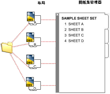 - 图纸是从图形文件中选定的布局。可以从任意图形将布局作为编号图纸输入到图纸集中。
