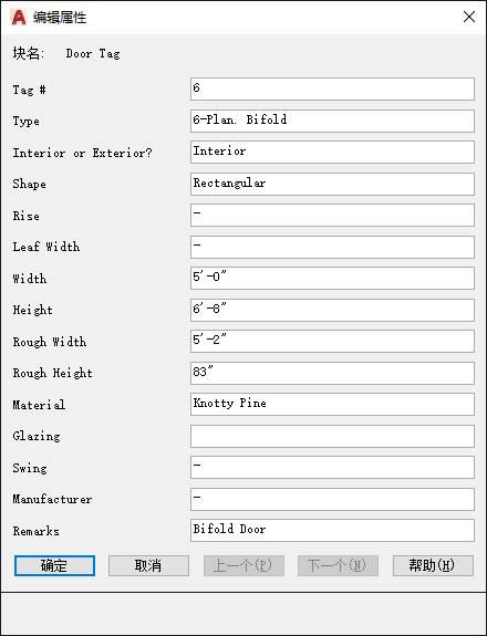 指明选定块的名称。包含在块中的每个属性值都将显示在此对话框中。