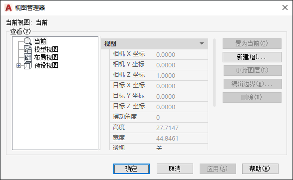 对于模型和布局视图,将显示为命名视图指定的视图类型。