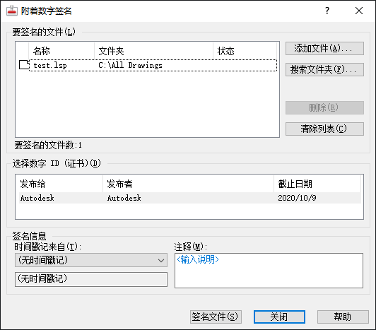 为该对话框中列出的每个文件附着数字签名。
