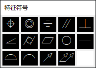 在“形位公差”对话框中,将符号插入到“符号”文本框中。下表格说明了这些符号。