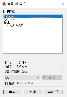 显示可用的打印样式,包括默认打印样式“普通”。打印样式是一个用于打印的特性设置集合。