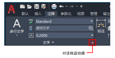 一些功能区面板提供了对与该面板相关的对话框的访问。要显示相关的对话框,请单击面板右下角处由箭头图标 表示的对话框启动器。