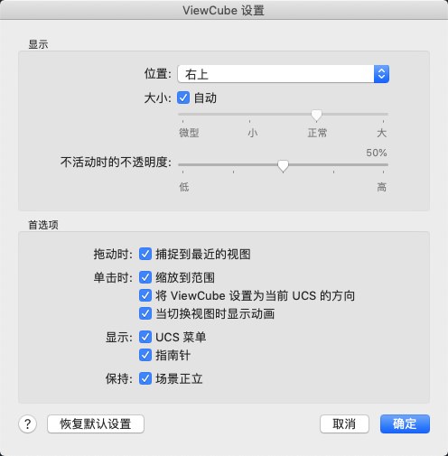 应用 ViewCube 工具的默认设置。