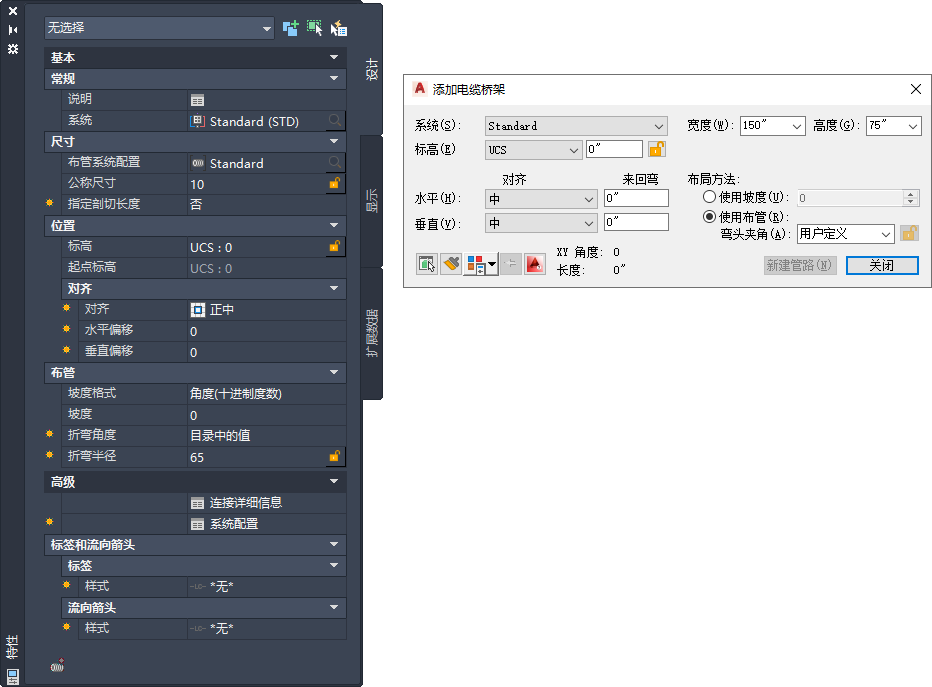 软件将插入相应的管件,以连接绘制的段。有关临时替代默认管件的信息,请参见“手动添加电缆桥架或套管管件”。