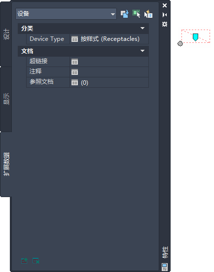 因为图形中的设备是设备样式的实例,所以,该设备具有设备样式中每个分类定义的特性。在“特性”选项板的“扩展数据”选项卡上,可以查看或替代图形中一个或多个设备的分类。