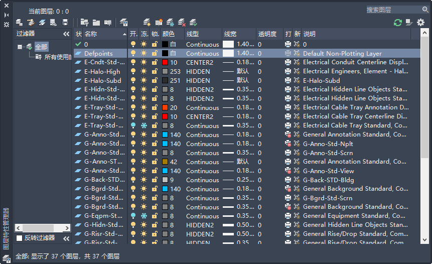 使用图层特性管理器可以查看和管理当前图形中的图层。