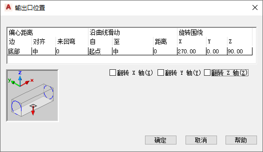 指定一个新的旋转角度,或者基于 X、Y 或 Z 轴翻转管件