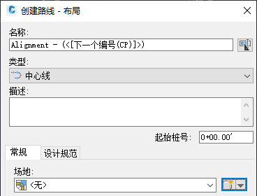 使用“创建路线 - 布局”或“创建路线 - 从多段线”对话框创建路线时,默认设定是创建无指定场地 <无> 的路线,如图 2 中所示。