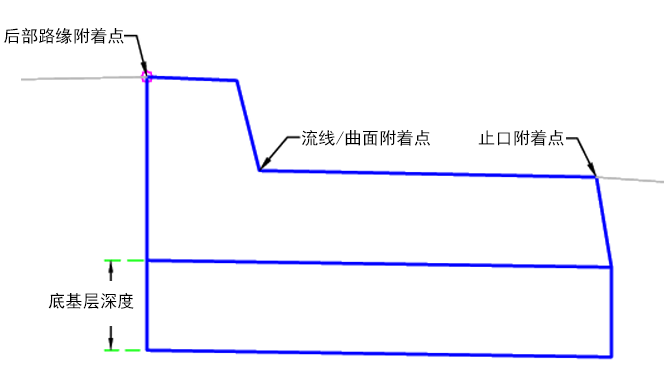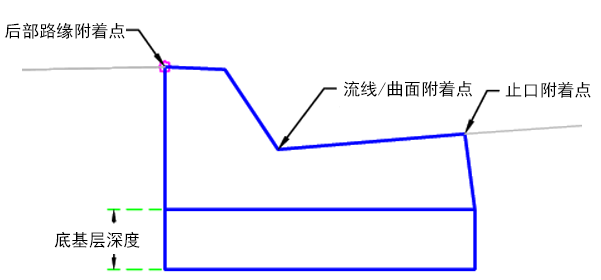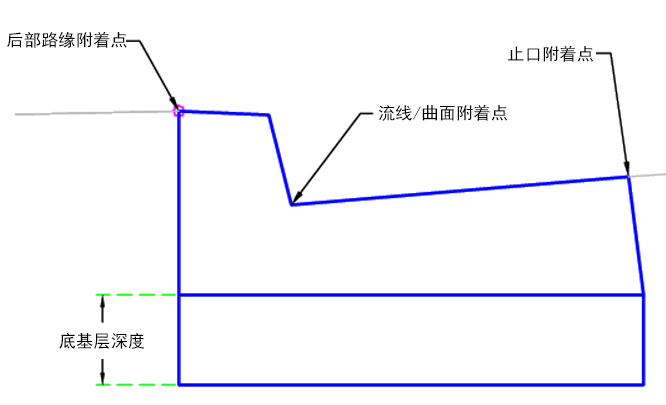 | 附着点 | 指定路缘附着点所在的位置。 | 止口/路缘后面/流线曲面 |