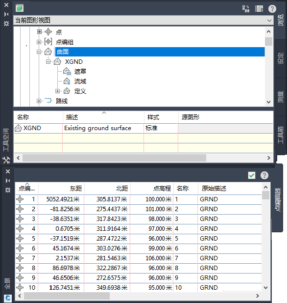 “工具空间”窗口和“全景”窗口共享若干要素。