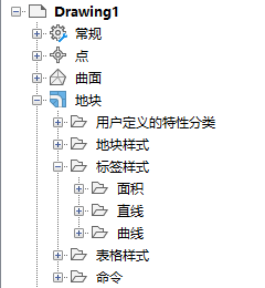 可以在“工具空间”中的“设定”选项卡上的“地块”集合中查看可用的地块样式: