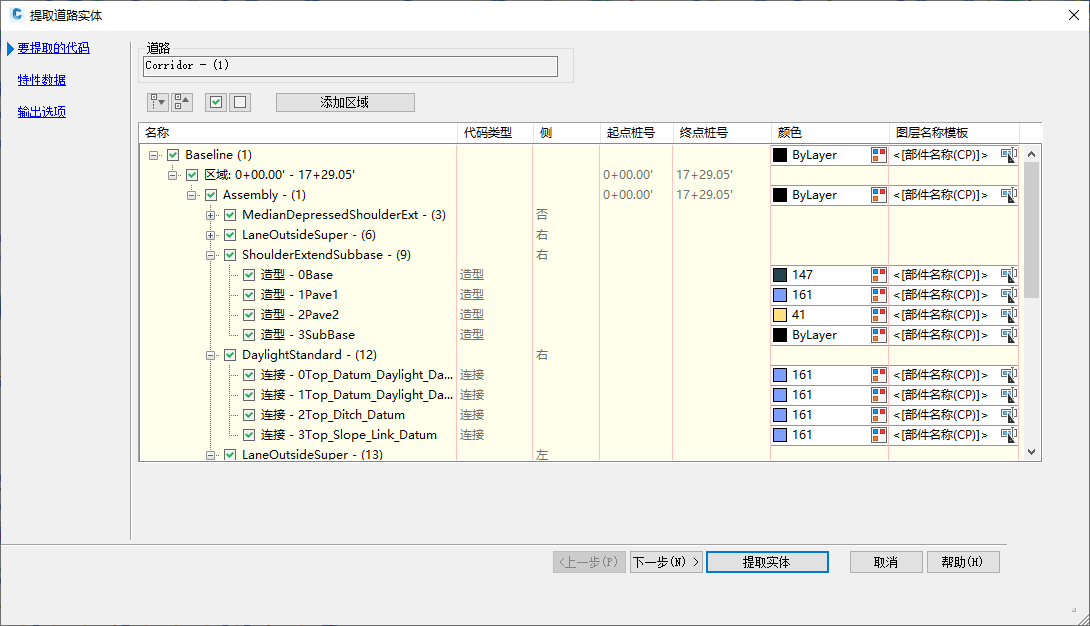 选择将道路区域导出为实体还是 [桩号范围/多边形内/所有区域]:
