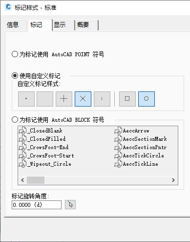 可以将标记样式设置为使用 AutoCAD 点、自定义标记符号或块。
