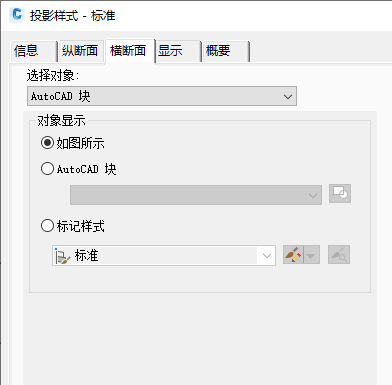 “投影样式”集合中找到。使用“横断面”选项卡可以配置横断面图的显示设置。