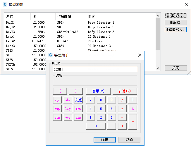 - 双击模型参数(例如 LenB1)的“方程式”列值,然后您可以输入值或方程式以指定零件的长度。
