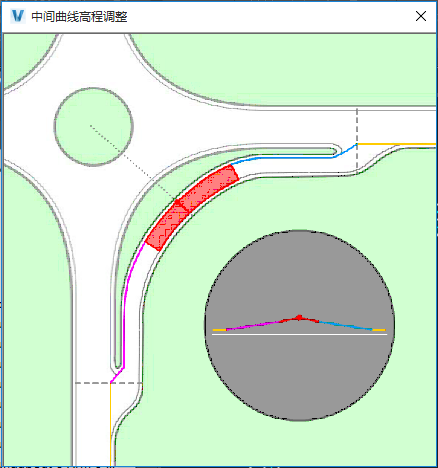 “环形交叉口特性图解”用于解释术语。选择“图解”按钮以显示此图解,再次单击可将其隐藏。在不同字段中单击会将图解的显示更改为选定参数。