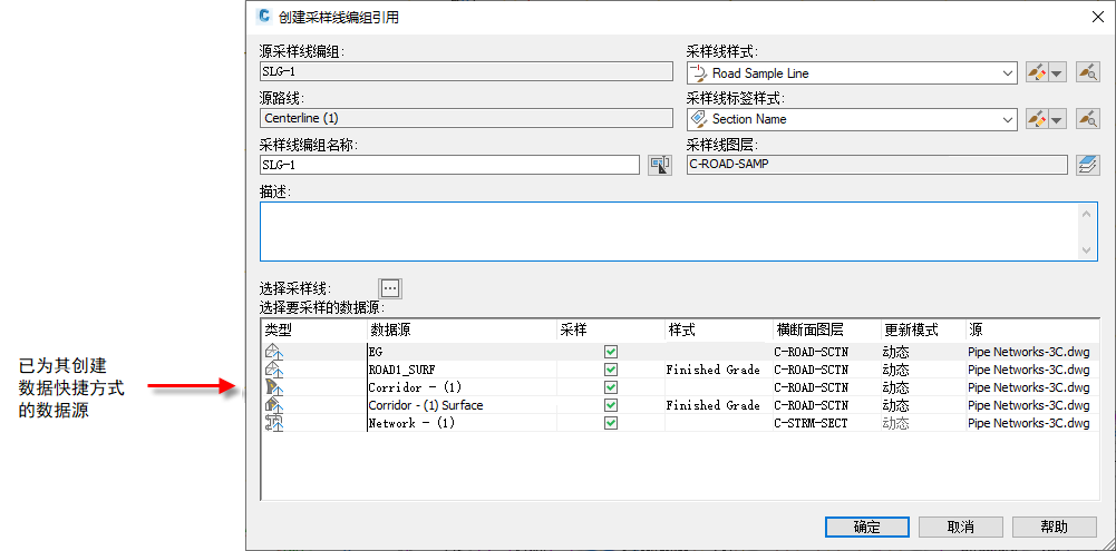 创建采样线编组引用时,已为其创建数据快捷方式的数据源将列为可供采样的数据源。