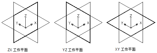 创建标准的 WCS 的 ZX、YZ 和 XY 工作平面。