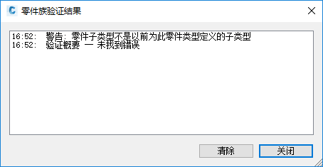 成功完成这些步骤后,将完成对零件的验证并更新状态栏,同时出现一条消息,表明零件验证是否成功。