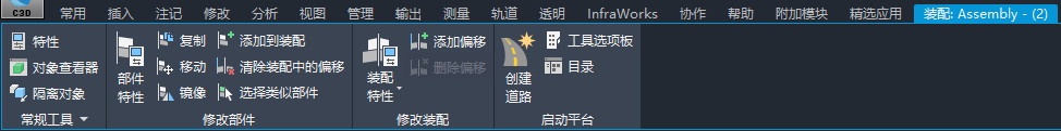 Autodesk Civil 3D 功能区是访问命令和功能的主要用户界面。