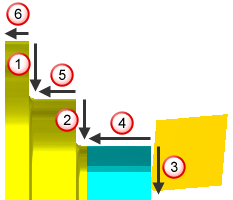 进给方向 — 这是执行操作的刀具进给的方向。对于车削和镗孔特征,请选择“朝向主轴”或“朝向面”。对于面和背面特征,请选择“正”或“负”以沿 X 轴指定方向。对于粗加工、半精加工和精加工操作,请单独设置该选项。