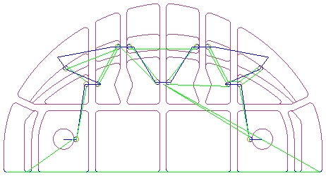 另一个中心线仿真显示开始点已移至连接曲线与刀具路径的交点处,并且刀具路径更加对称: