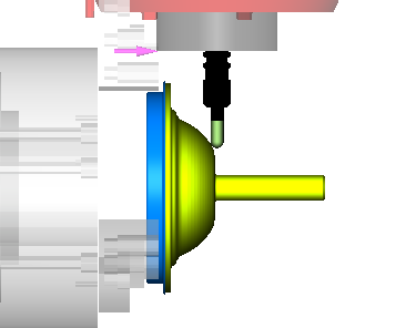 如果将四轴旋转策略与默认角度一起使用,机头会在以粉色箭头标记的位置与卡盘发生碰撞: