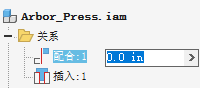 关系 显示部件中所有联接和约束的序列列表。可以通过选择“关系”文件夹中的项目快速更改或测量约束几何图元。必须启用“在浏览器中编辑值”浏览器菜单选项。