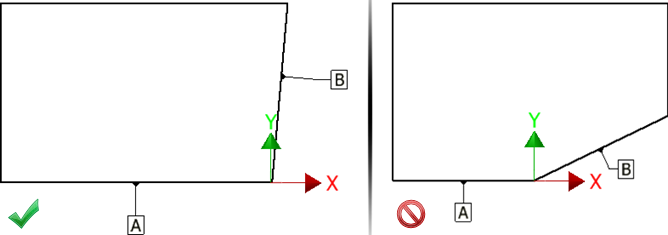 下图显示了两个类似的示例,其中,DRF A|B 中的基准特征 B 沿 DRF 的 X 轴约束零件的平动。