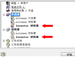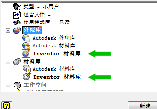 3. 在“材料浏览器”或“外观浏览器”中,确认 My_InventorMaterialLibrary 是激活库。