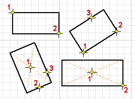 。通过定义中心、方向和相邻边创建矩形。第一次单击会设置中心,第二次单击会设置一侧的方向和距离,第三次单击会设置相邻边的距离。