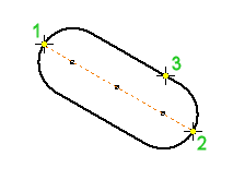 。创建由槽圆弧圆心的放置和距离以及槽宽度定义的线性槽。前两次单击会指定圆弧中心,第三次单击会指定槽的宽度。