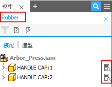 - 打开/关闭搜索和过滤器(过滤器在 Inventor LT 中不可用)。