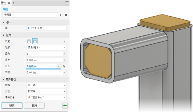 请安装自定义标准件库以使用 Inventor 2020 中添加的端盖命令。改进了“开槽”和“插入结构件”功能。