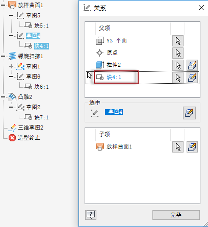 现在,会在零件的“关系”对话框中报告特征使用的草图块。