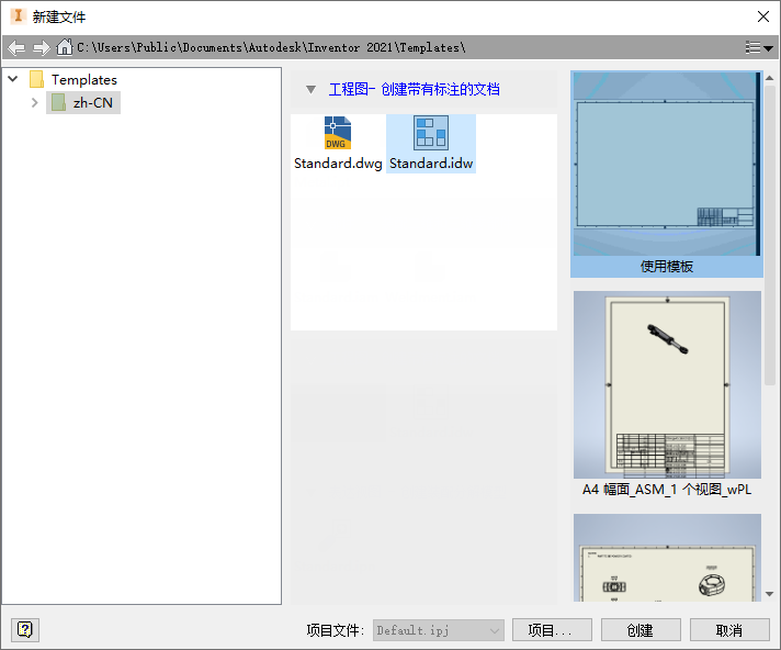 创建新工程图文件时直接访问图纸格式模板。