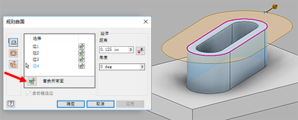 3. 在图形窗口中,选择边以创建规则曲面。如需要,可以使用“选择其他”浏览可选的几何图元,然后单击进行选择。