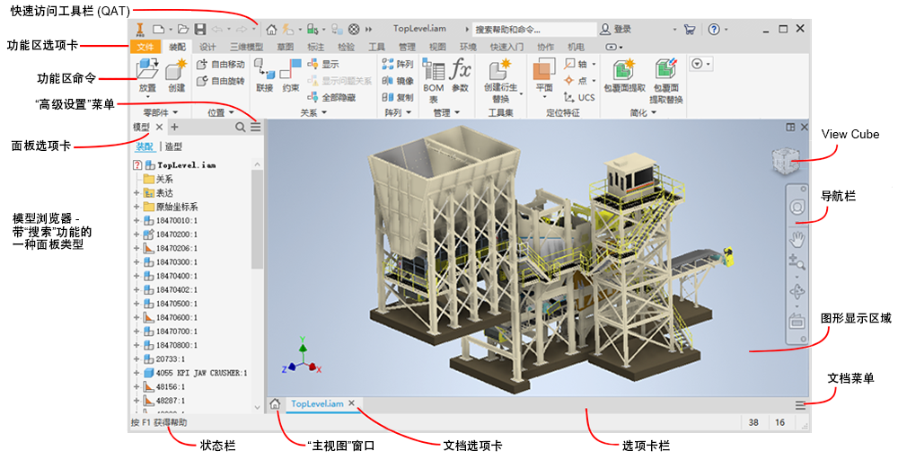 Inventor 的应用程序窗口是包含一个或多个 Inventor 文档的窗口。