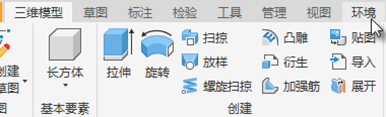 - 在零件文件中,单击功能区上的“环境”选项卡。